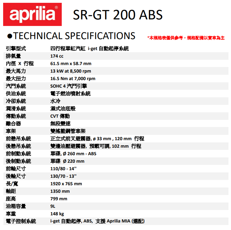 新世代的174cc水冷單缸引擎,能提供17.7匹的最大馬力和16.5Nm的最大扭力,同時搭載怠速熄火功能,節能環保之餘,還能讓SR GT輕鬆面對不同城市交通情況。
